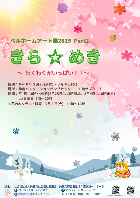 お問合せ先:鈴鹿市社会福祉協議会 鈴鹿市障害者生活介護施設 ベルホーム